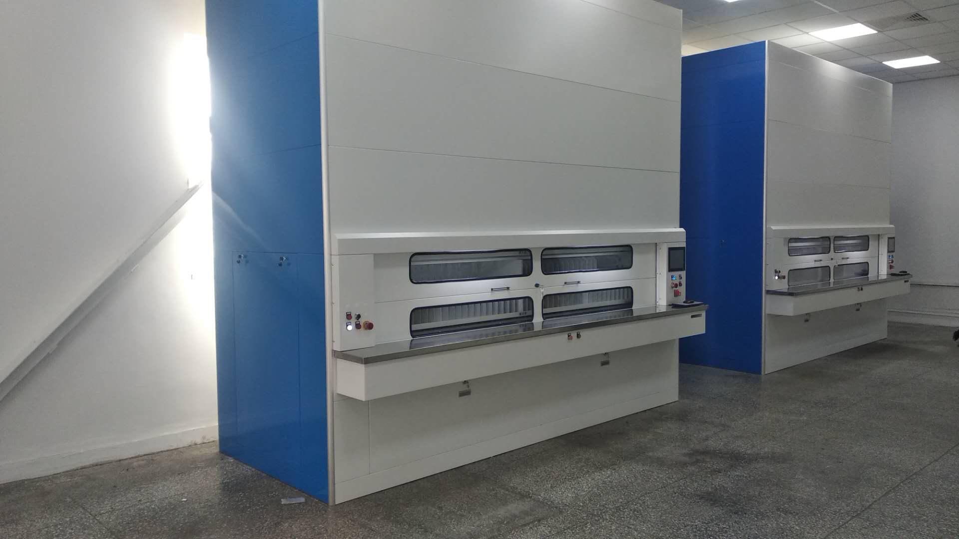 以托盤為存儲單元的模塊化倉儲,通過設(shè)備中間巷道升降小車的升降和水平運動,貨物存放至設(shè)備前后擱架。帶來99.9%的分揀準(zhǔn)確性和85%的用地節(jié)省
